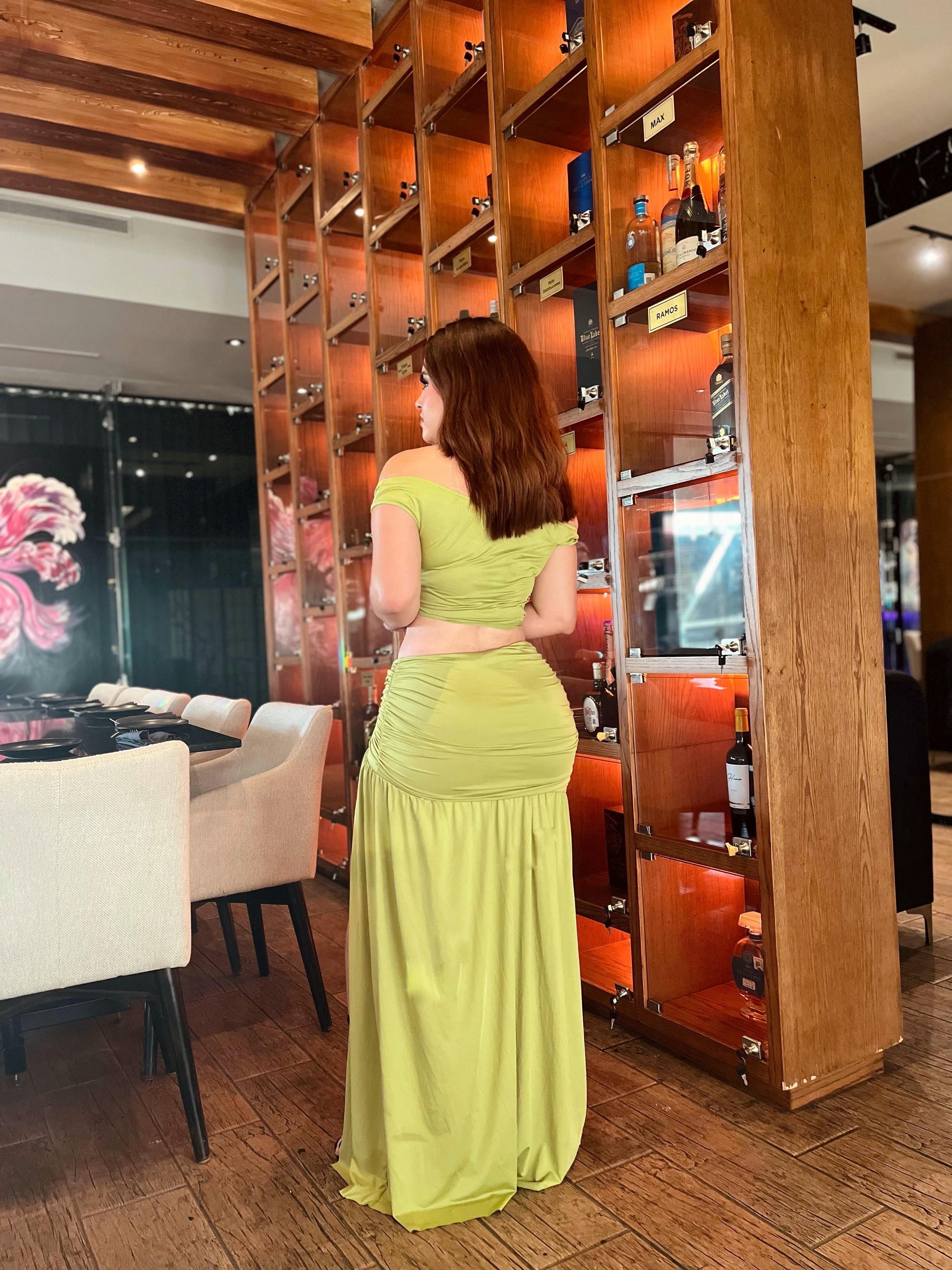 Conjunto de falda y top verde con broche